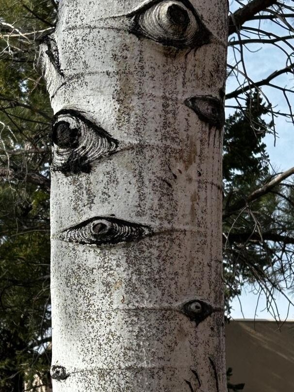 6. Selvi, I just love this! Aspens are one of my favorite trees. When we were children I remember my Dad calling them “quakies”. I thought this was his special name for them…but now I learn from you that this is a common nickname. I love the fall colors…on Los Pueblos, in Los Alamos, and especially up at the ski hill! I remember one year when the tent caterpillars had decimated the leaves up at the Santa Fe Ski Basin. I was riding my bike up there when Ian was having his physical therapy at St. Vincent. The road was covered with squashed caterpillars (from the cars) and the trees were bare. I was told they possibly would grow more leaves? Also, I’ve sometimes seen old “arborglyphs” in the backcountry of NM and CO. (This is when letters are carved in the thin bark.). You might see carvings from the 1800’s…possibly by the Basque herders who were watching the sheep and cattle.). Thank you, Selvi , for writing this.