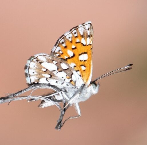 The term “Apodemia mormo complex” refers to several species within the Apodemia genus that resemble each other to such a great degree that elucidation of species and subspecies has been a long-term challenge. The complex has been in a state of regular taxonomic flux, a testament to its complexity. These metalmarks are scattered across the American West in ways that are fascinating and challenging to understand. Larval host shrubs are either Eriogonum spp. or Krameria spp. and some rely on only one plant species, from which they rarely wander very far. The latest effort to understand relationships within the group was made by Zhang et al. (2026), using total genome analysis. Their comprehensive effort produced results that make pretty good sense for New Mexico’s four members of this group, which we present below.