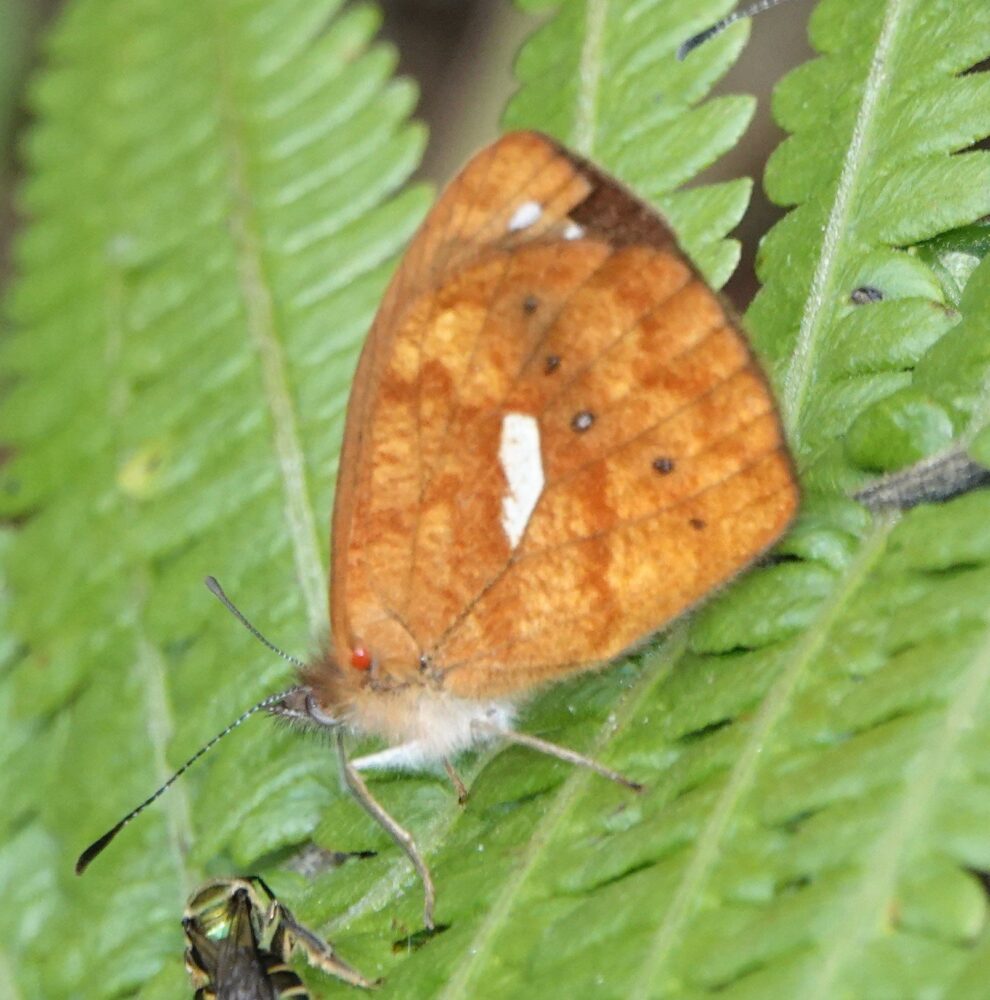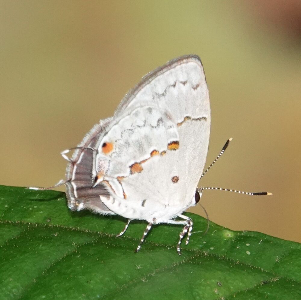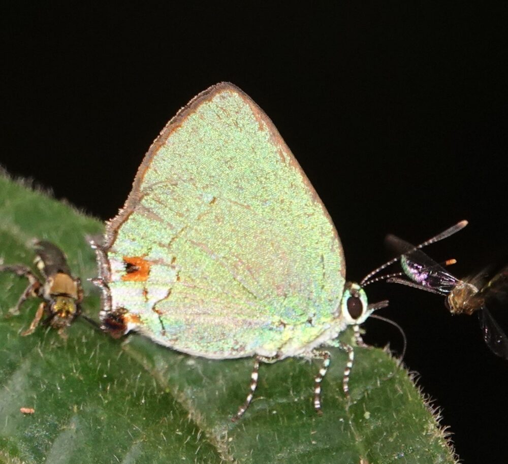 no English nameEuselasia orba spectralis Riodinidae: Riodininae) Pantiacolla; October 15, 2024 (photo by Steve Cary). Many metalmarks prefer to rest beneath leaves. This adds to the challenge of finding them and photographing them.