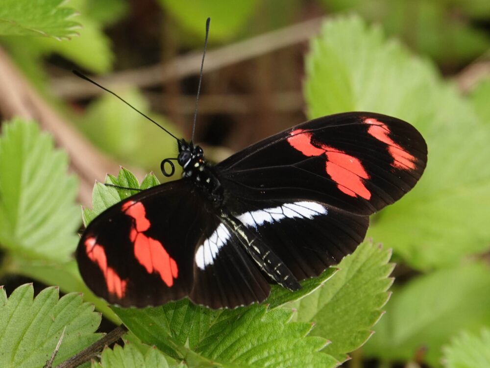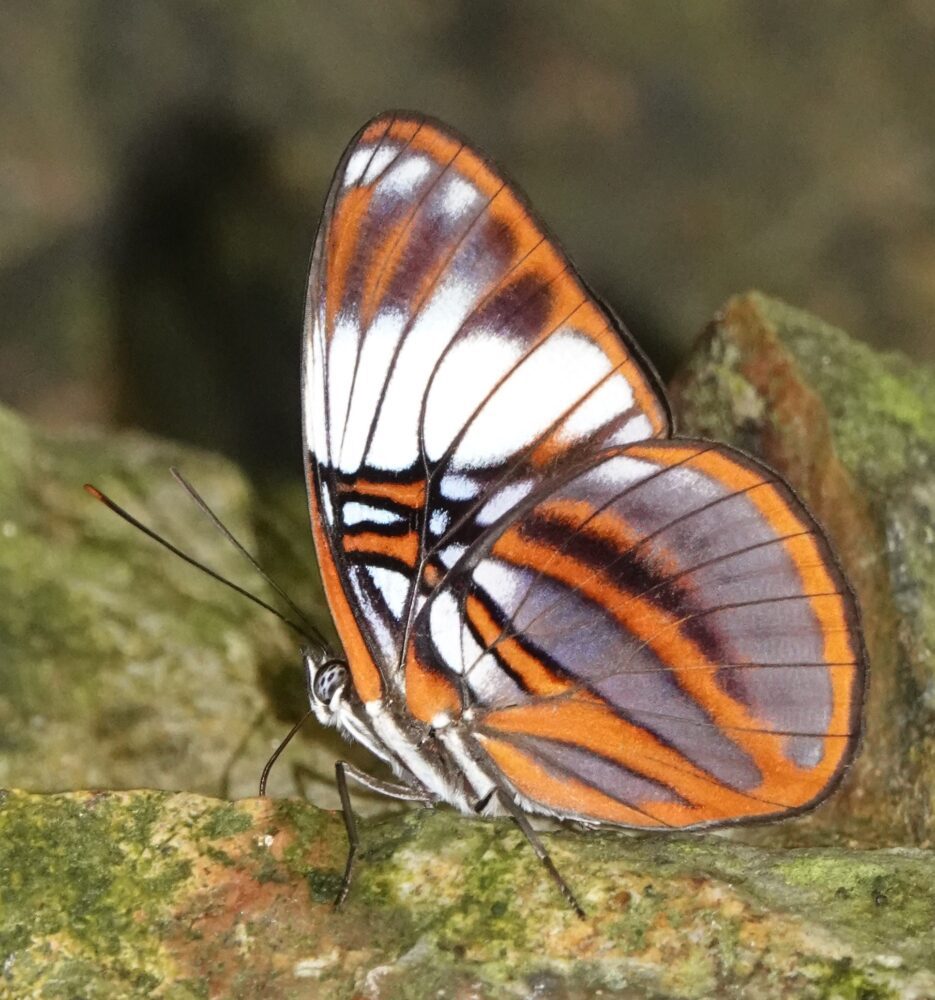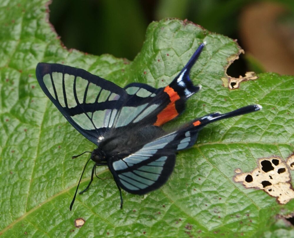Turquoise Emperor (Doxocopa laurentia Nymphalidae: Apaturinae) Manu Paradise Lodge; October 19, 2024 (photo by Steve Cary) you can’t make these up! related to our Emperors . . .Sylphina Angel (Chorinea sylphina Riodinidae: Riodininae) Morroleguia; October 20, 2024 (photo by Steve Cary). On our first full day back from the Pantiacolla “lowlands” we steered back up to some high country, stopping at a stream crossing at about 7000 feet elevation.Pink-Banded Longwing (Heliconius telesiphe: Nymphalidae: Heliconiinae) Morroleguia; October 20, 2024 (photo by Steve Cary).