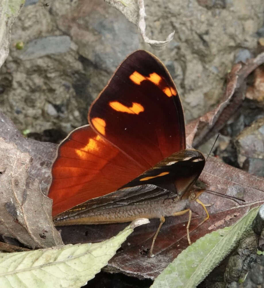 Red-Spotted Satin-Wing or Leprieur’s Glory (Asterope leprieuri: Nymphalidae: Biblidinae) Rocotal; October 13, 2024 (photo by Steve Cary).Carmine Falcon-Saqra (Corades enyo: Nymphalidae: Satyrinae) Rocotal; October 13, 2024 (photo by Steve Cary). Just as with satyrs in New Mexico and the US, they give you undersides all day, but you have to be patient and lucky to get a good upperside view or photograph.Celestial Perigraph (Perisama philinus: Nymphalidae: Biblidinae) Rocotal; October 13, 2024 (photo by Steve Cary).Flame-Based Perigraph (Perisama calamis (Nymphalidae: Biblidinae) Rocotal; October 13, 2024 (photo by Steve Cary). Oh boy, another source of electrolytes!Foothill Jadewing or Green Longwing (Philaethria ostara Nymphalidae: Heliconiinae) Rocotal; October 13, 2024 (photo by Steve Cary). Kind of shaped like a swallowtail, but it’s a longwing; kind of resembles the also very emerald green Malachite, but it is its own beautiful thing.Undescribed Ruby-Eye (Perichares n. sp. Hesperiidae: Hesperiinae) Rocotal; October 13, 2024 (photo by Steve Cary). One thrill of the trip was this lovely skipper. Skipper lovers Bill and Olaf got busy walking the roadsides and putting out their spit wads before the sun even burned off the morning clouds. I was following and putting out fish bait. This may have been my first butterfly of the day, which I photographed as it investigated Bill’s salty offering. My flash showed why these skippers are called ruby-eyes. I snapped only two shots and was satisfied with the results. Bill was not far behind with his net. That evening Bill showed Olaf the specimens and Olaf promptly declared it was a completely new species. Olaf would know. I was pleased that Bill took the specimen because you cannot do complicated taxonomy on a photo, whereas a specimen allows for lab work to be done as needed.
