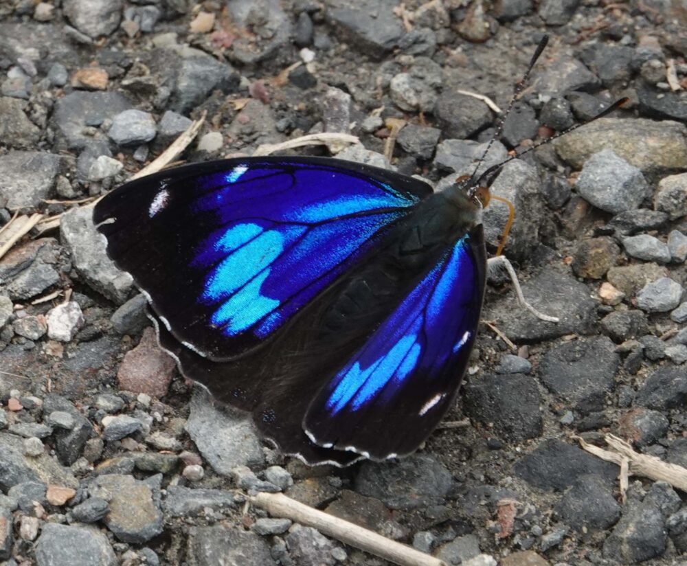 Rocotal is a terrific butterfly spot that is about halfway up the mountain at about 6000 feet elevation. It has a large pullout, a rain shelter, and multiple creek crossings if you are willing to walk a couple miles along the road. Rocotal was part of our deployment on October 13, and that’s where I spent most of my time.