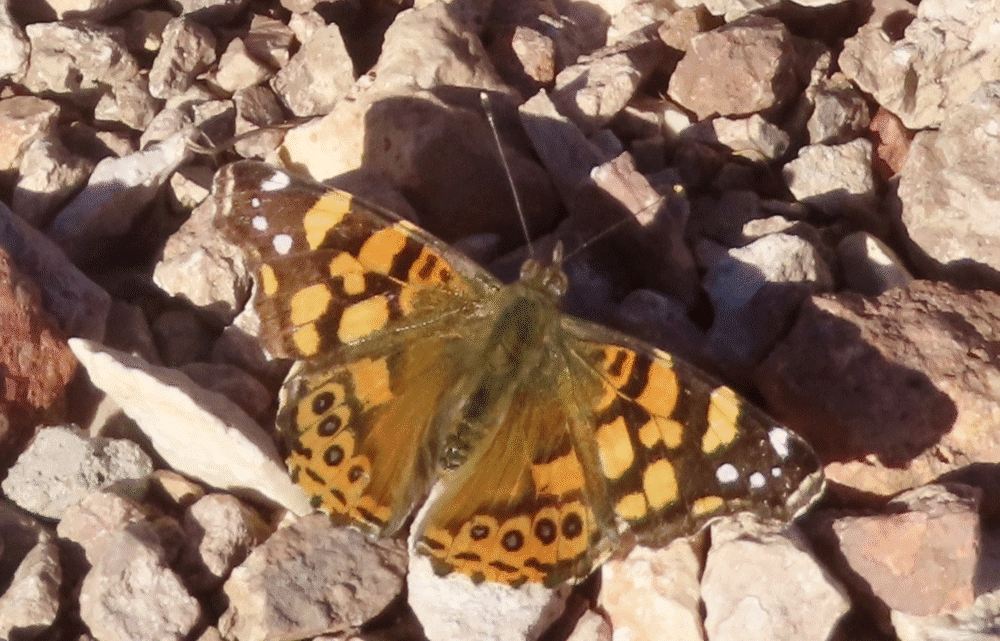 I STILL have butterflies hovering around dried-up flower beds in Albuquerque. January 4, 2026.